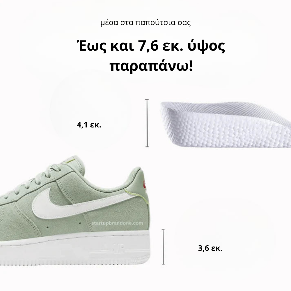 | Έως και +7,5 εκ. ύψος (3,5 εκ. η σόλα + η σόλα του παπουτσιού) | ||